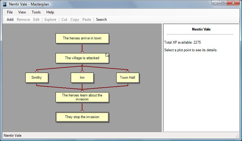 I recently came across a nice piece of software for DM’s of 4th Ed. who need a little bit of help organizing and keeping their campaign stuff in order. The program includes flowcharts for your adventures that link to encounters, maps, and all sorts of stuff. You can even use Dungeon Tiles to plan and map out your encounters!
