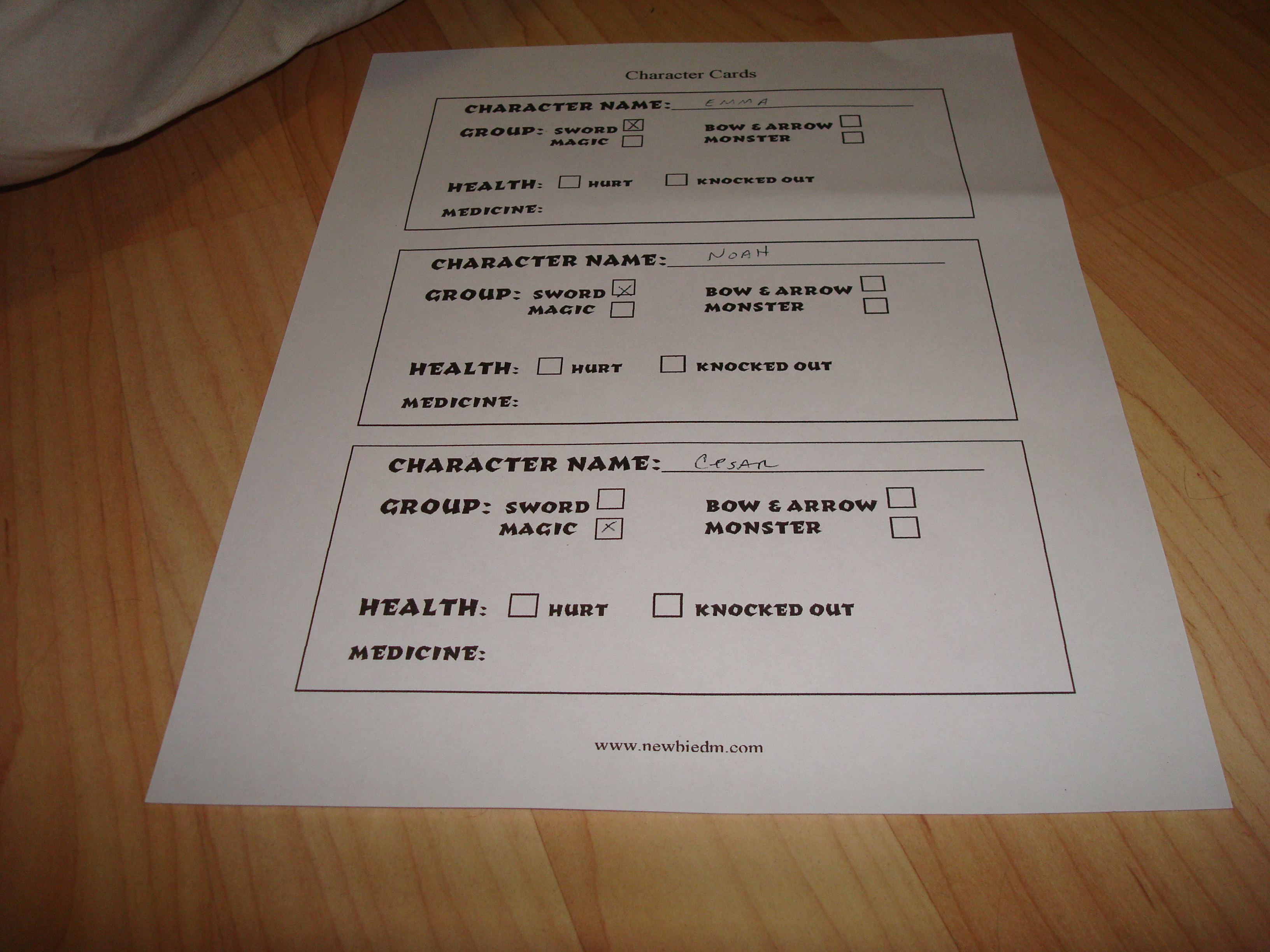 - The character cards