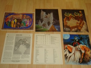 - 24 cardstock color sheets (castles, npc’s, spell charts, etc)