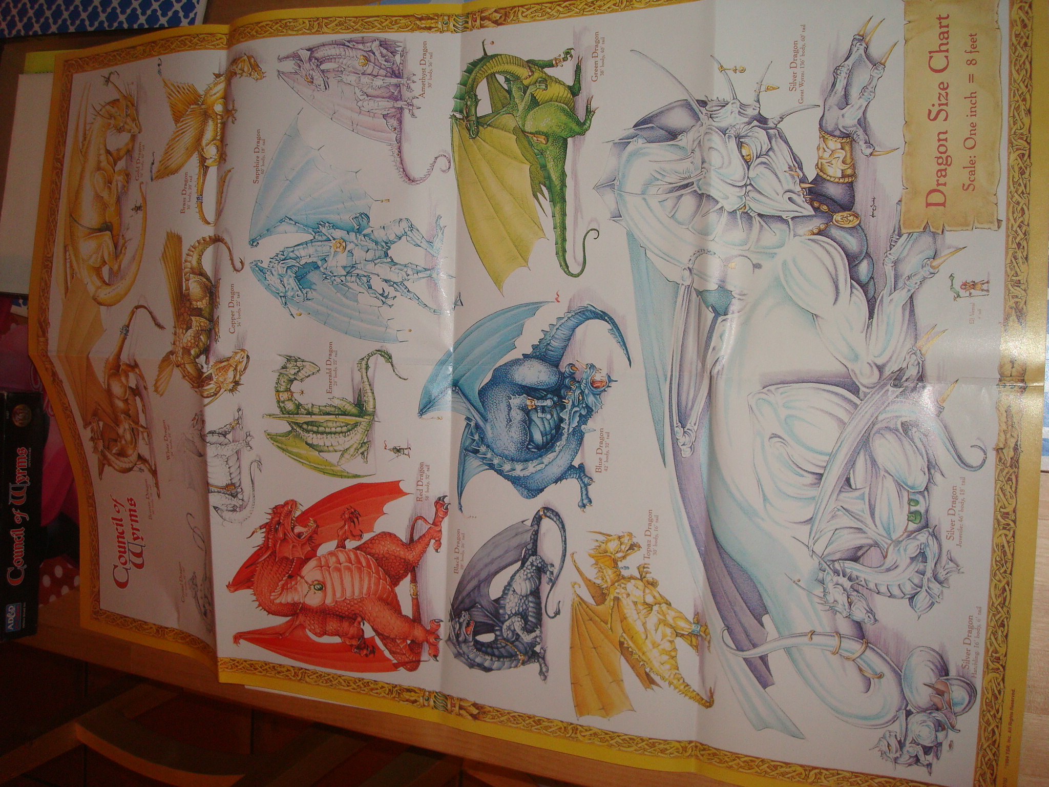 - 3 posters (map of the setting, dragon clans, and Dragon size chart)