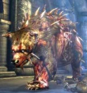 The next encounter happens about an hour later. It involves the darkspawn returning with a seige engine of sorts… a dreaded blight-tainted bear, a Bereskarn!