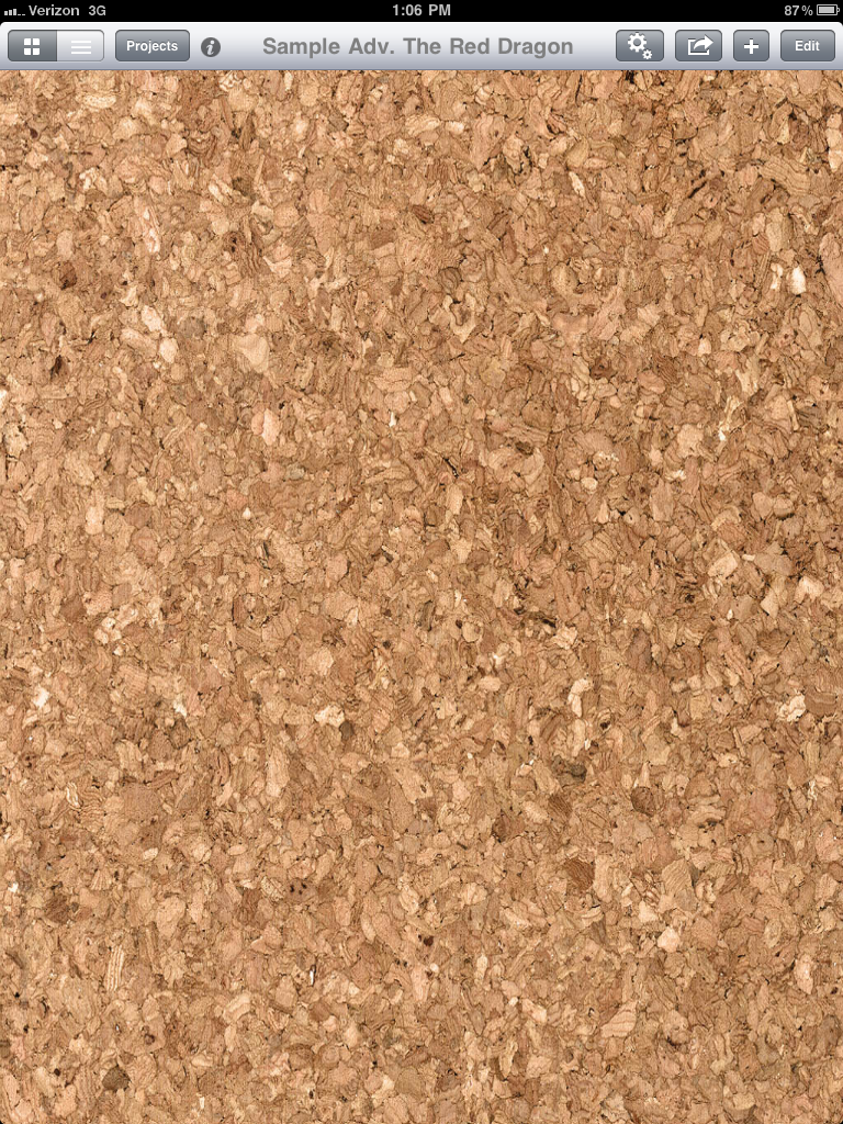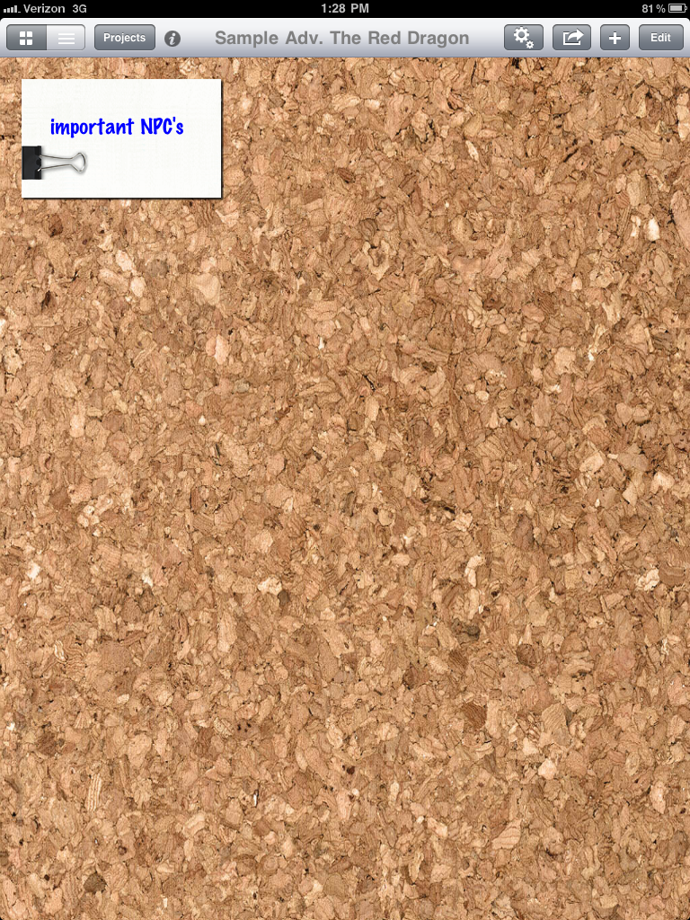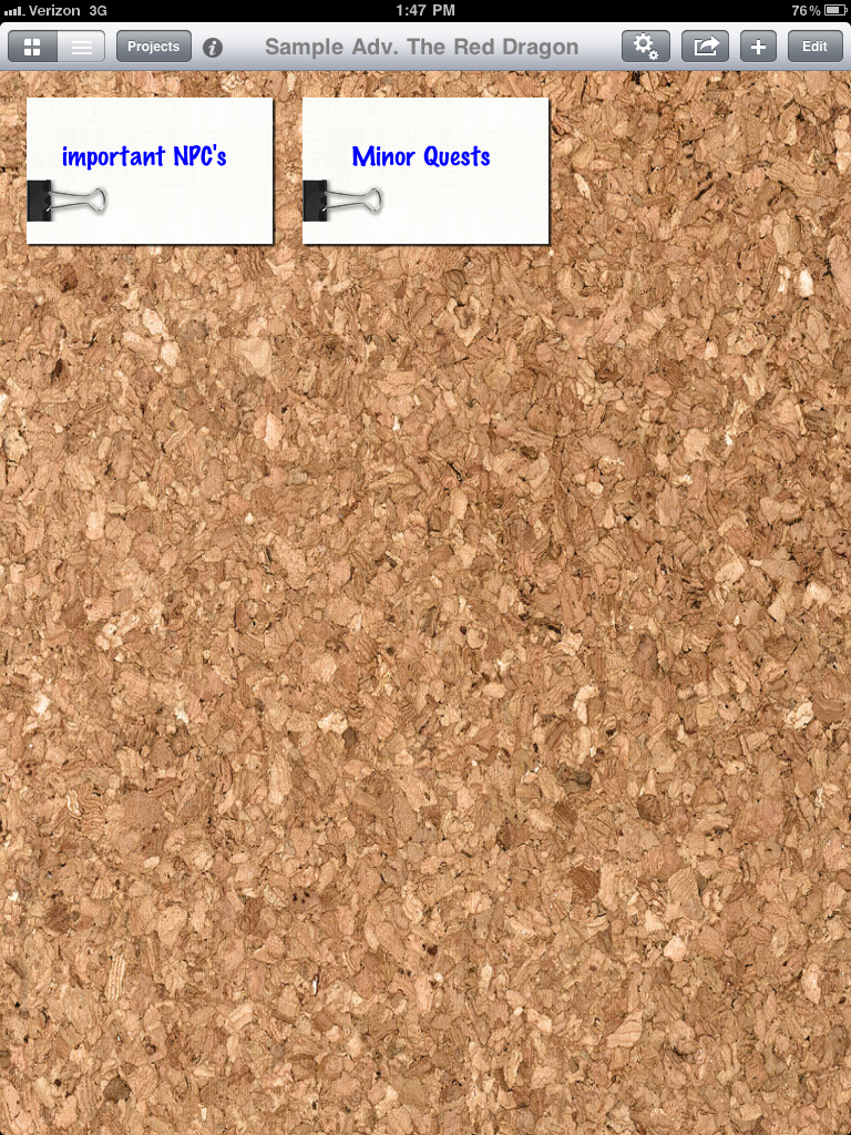 So the app starts you off with a corkboard, much like what you may use in real life to pin notecards on: