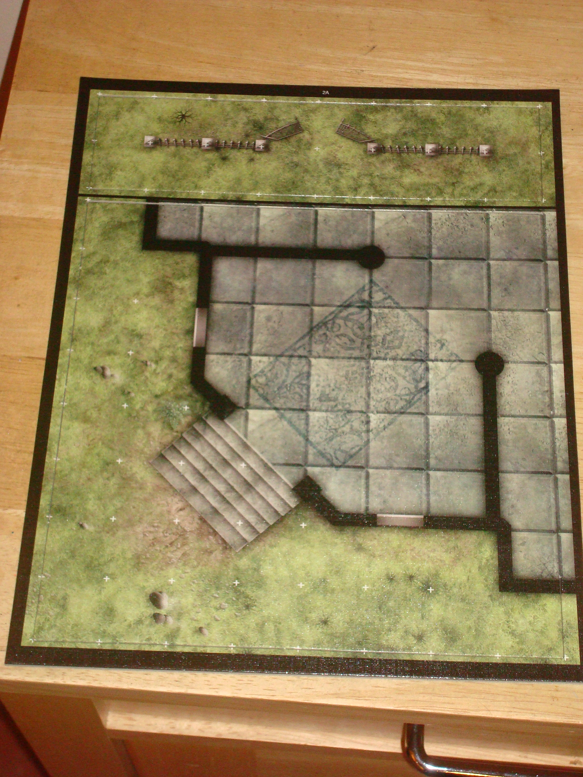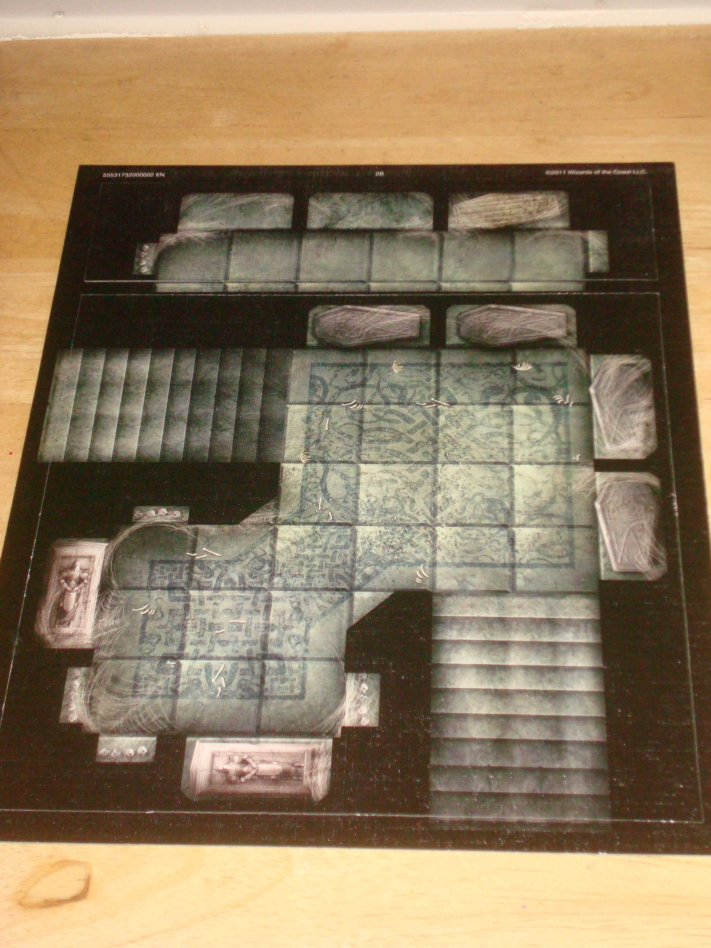 WOTC has released their latest Dungeon Tiles set, Shadowghast Manor. This set is certainly nice to look at, it’s basically a large manor or mansion, with the underground catacombs for it on the flip side. I think that owning two sets of this would probably get you more use out of it though.