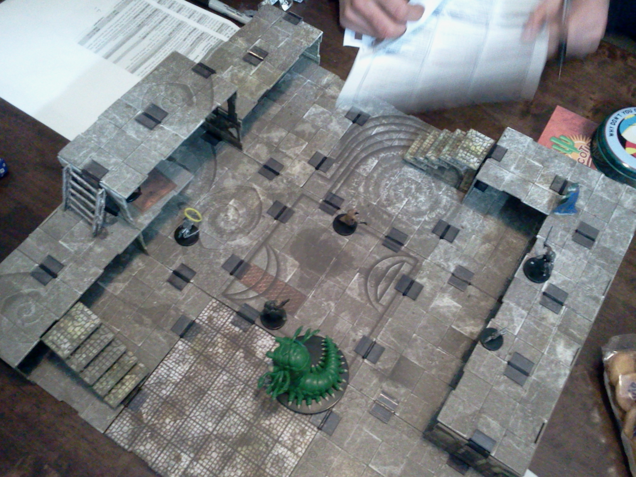 Last weekend our Friday night DM surprised us with a fantastic pair of maps made from Terraclips and D&D tiles for our campaign finale. I had never heard or seen these strange tile-and-clip things, so I asked him about it. I was also surprised by how sturdy the structure was – he picked it up with one hand and swung it around like a solid piece of cardboard. I was uncertain but by the end of the night I was more curious about the tiles was interested in finding out more.