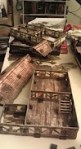 neatly in the box. Note: the ladders have very snug slots and you may want to leave them assembled instead of risking tearing them by disassembling and reassembling them. Thankfully, the box is just high enough you can lay the ladders down inside the box and close it without crushing the ladders. The stairs are easily dissembled without problem and stored flat. The clips are already loose and require no prep – open box and pour out. I’m storing mine in their boxes as-is because boxes stay neatly on my shelf versus bags or a different storage bin.