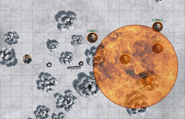When playing virtually, this becomes easier, as the grid allows you to drop template graphics on it, making adjudicating areas of effect a very simple process.